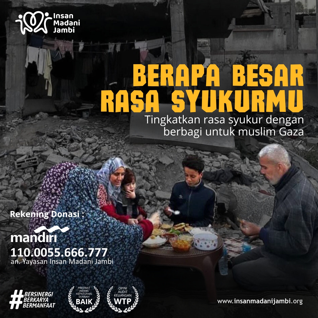 Dalam upaya mendukung saudara-saudara kita di Gaza yang tengah menghadapi kondisi sulit, Lembaga Amil Zakat Insan Madani Jambi mengajak seluruh masyarakat Jambi untuk turut serta dalam aksi kemanusiaan.