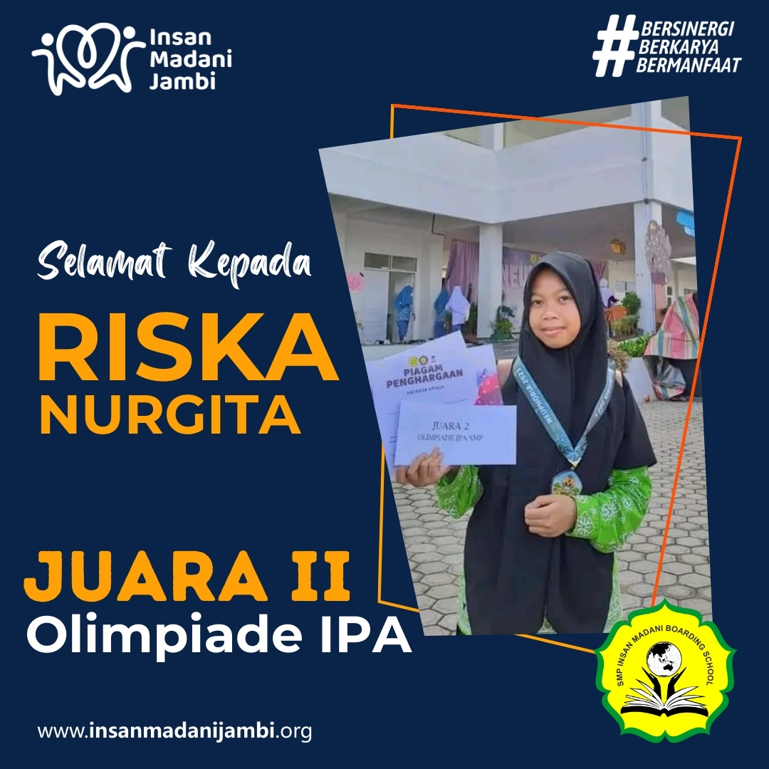 Jambi, 4 Desember 2023 – Lembaga Amil Zakat Insan Madani di Kota Jambi bangga menyampaikan ucapan selamat kepada adinda Riska Siswi SMP Insan Madani Boarding School Jambi yang baru-baru ini meraih juara 2 dalam Lomba Olimpiade Ilmu Pengetahuan Alam (IPA) tingkat Kota Jambi.